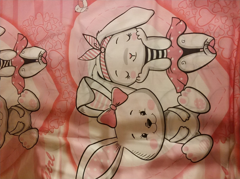 Доче понравился комплект, единственно наволочка у нас не в сердечка, а в том же рисунке что и пододеяльник, но все равно симпатично)