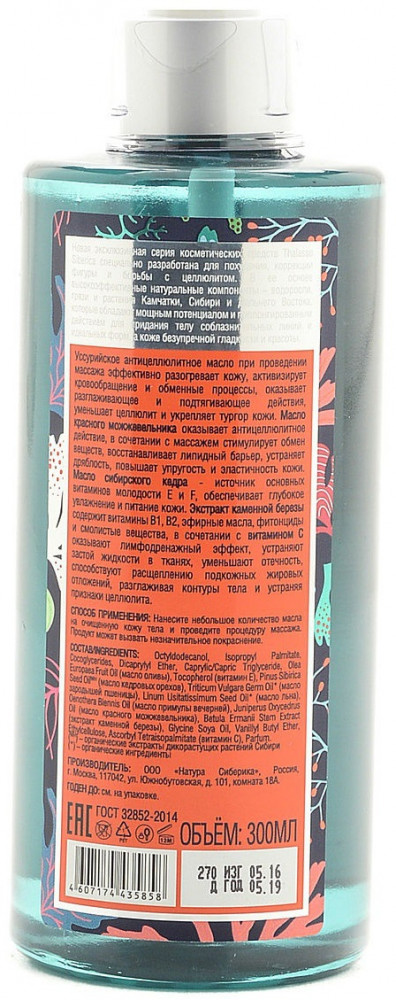 Natura Siberica Масло для тела массажное антицеллюлитное УссурийскоеВ данный момент этот товар отсутствует в продаже. Возможно, у нас найдется аналогичный или похожий товар здесь. Серия: Thalasso Уссурийское антицеллюлитное масло при проведении массажа эффективно разогревает кожу, активизирует кровообращение и обменные процессы, оказывает разглаживающее и подтягивающее действие, уменьшает целлюлит и укрепляет тургор кожи. |