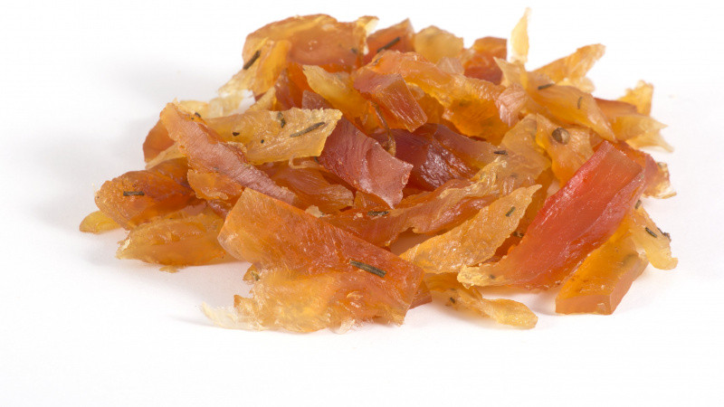 Вяленые лакомства произведены по оригинальной технологии. Мясные продукты сначала замачивают в обогащенной фитокорректорами смеси, затем происходит процесс вяления, аналогичный естественной сушке на солнце.