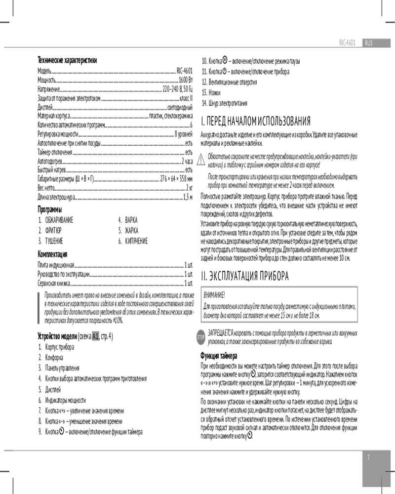 💳 Оплатить за товар можно при получении 🇰🇿 Есть бесплатная доставка по Казахстану от 1 дня 🎁 Копите бонусы с каждой покупки Индукционная плита Redmond RIC-4601 — эксклюзивная эргономичная новинка с корпусом из высококачественного пластика и стеклокерамики, приятно удивляющая своей технологичностью и универсальностью. Такой чрезвычайно практичный и удобный прибор станет идеальным решением для небольшой кухни и дачи. |