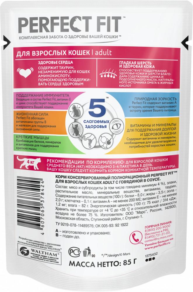 Perfect Fit Паучи для взрослых кошек с говядиной
