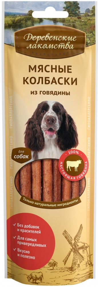 Деревенские лакомства Мясные колбаски из говядины для собак-20% +39 аппетитность повторный заказ подходит щенкам хорошая добавка срок годности