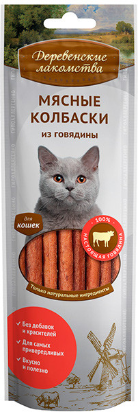 Деревенские лакомства Мясные колбаски из говядины для кошек-20% +37