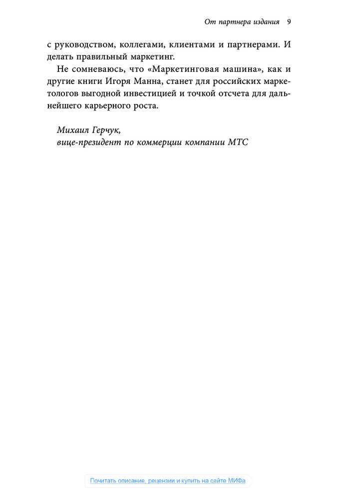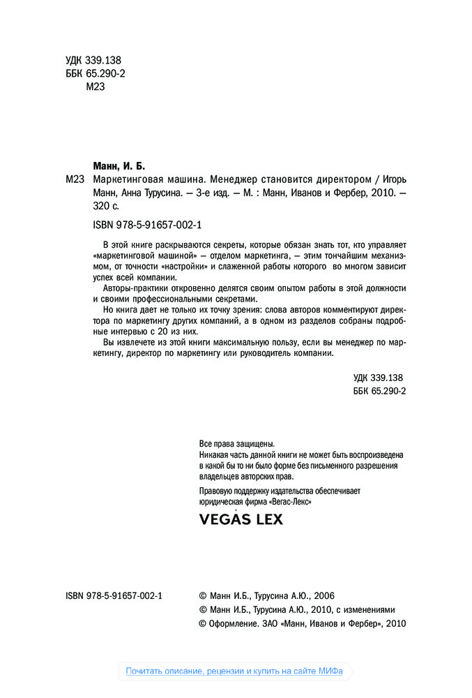 Маркетинговая машина. Менеджер становится директоромВ данный момент этот товар отсутствует в продаже. Возможно, у нас найдется аналогичный или похожий товар здесь. Серия: Манн, Иванов и Фербер У всего хорошего всегда бывает продолжение. |