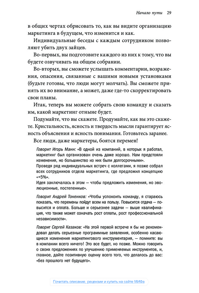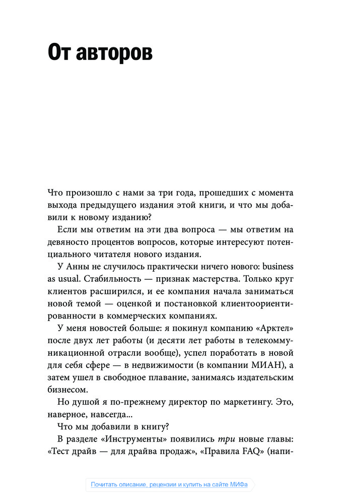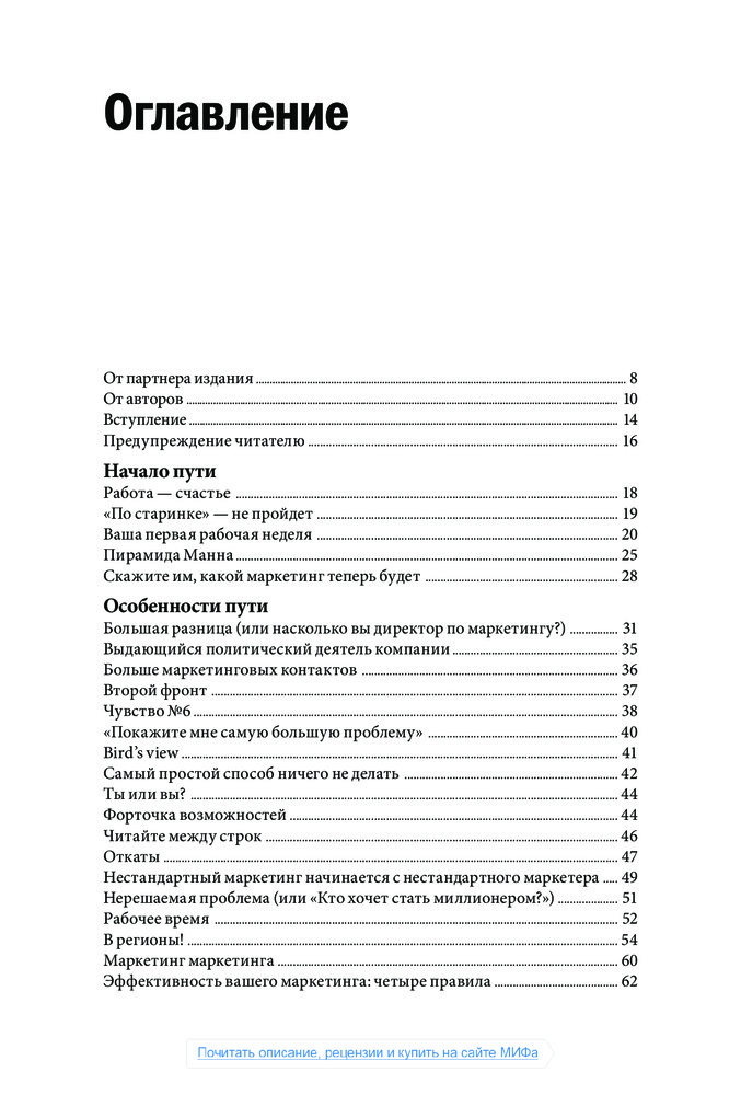 Книга подойдёт многим. Легко читается. Приведены разные примеры и многие интересные. Сейчас заканчиваю читать и могу сказать, что в книге есть два минуса. Первый, по окончании складывается впечатление, что автор не всё рассказал, в смысле он мог, но не стал. Второе, понимаю, что автор маркетолог и пытается продвинуть и другой товар. Но частое упоминание: "... А об этом я уже рассказал в книге Маркетинг на 100%" после десятого раза меня стало раздражать. Я купил эту книгу и ответы хочу увидеть в ней, а не бежать за следующей. Типа заезженная пластинка дразнит маленького ребёнка "хочешь расскажу сказку?..." Поэтому пятёрку не ставлю.