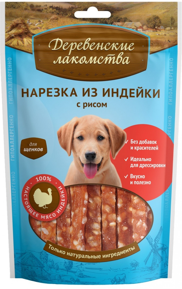 Деревенские лакомства Нарезка из индейки с рисом для щенковВ данный момент этот товар отсутствует в продаже. Возможно, у нас найдется аналогичный или похожий товар здесь. Условия хранения товара: температурный режим от -10 до +25°С. |