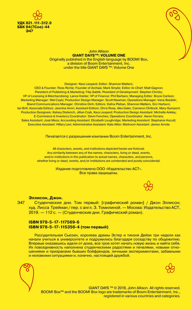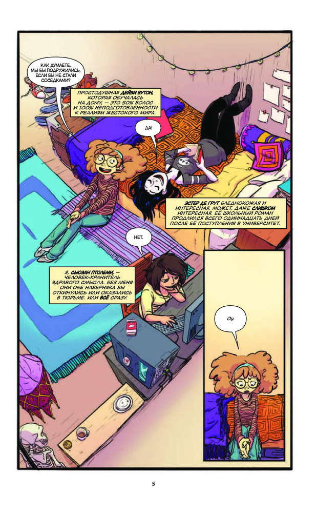 Серия: Студенческие дни. Графический роман Рассудительная Сьюзен, королева драмы Эстер и тихоня Дейзи три недели как начали учиться в университете и подружились благодаря соседству по общежитию. Впервые оказавшись вдали от дома, все трое хотят начать новую жизнь и найти себя. Их повседневность наполнена студенческими радостями и печалями, новыми отношениями и призраками бывших бойфрендов, личными экспериментами, забавными и неловкими ситуациями и, конечно, настоящей дружбой. |