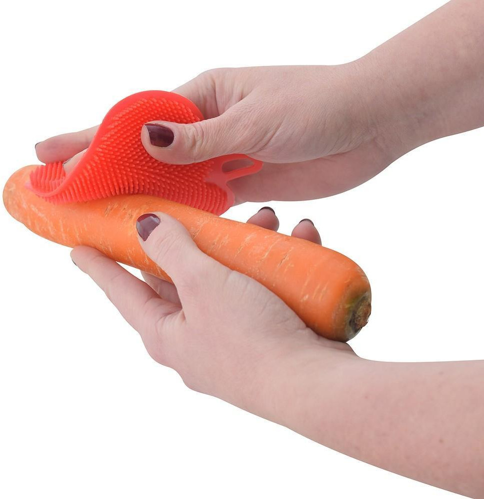 Приятная на ощупь. Хорошо мыть овощи и фрукты. Но моющее средство быстро стекает.