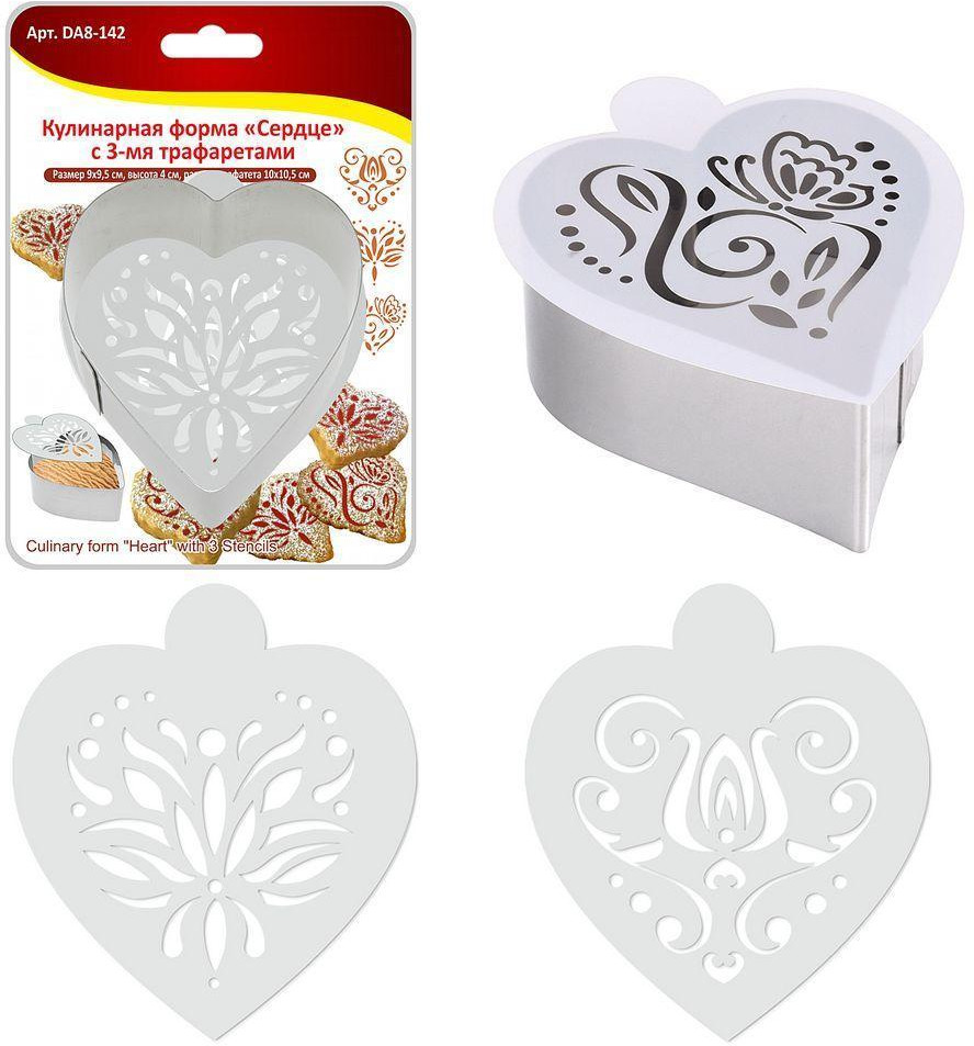 Мультидом Трейдинг Форма кулинарная с трафаретами «Сердце»В данный момент этот товар отсутствует в продаже. Возможно, у нас найдется аналогичный или похожий товар здесь. Металлическая форма для выпечки в виде сердца подойдет для выпекания бисквита для пирожных и для вырезания круглых форм из теста для печенья. В комплект входит 3 трафарета для декорирования печенья или пирожных сахарной пудрой. Трафареты не рассчитаны на высокие температуры используются для декора готовой выпечки. Металлическая форма для выпечки многофункциональна, с помощью нее можно эффектно подавать салаты, сервировать блюда и закуски, пожарить ровный круглый омлет. |