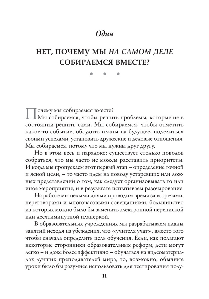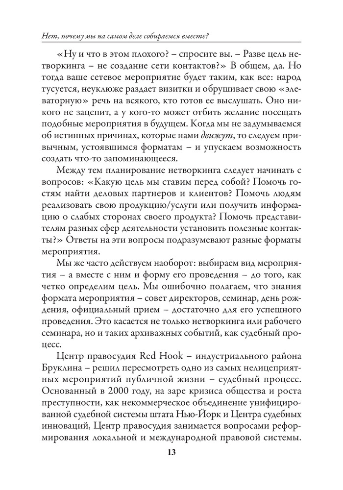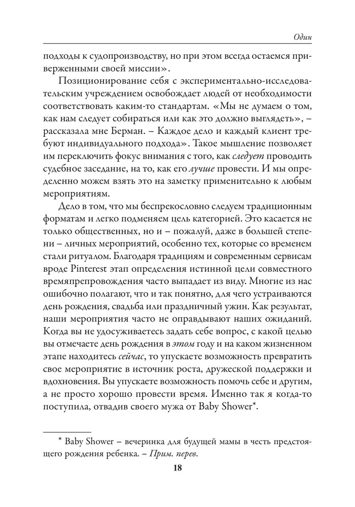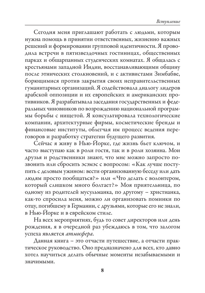 | Прийя Паркер — специалист по групповому взаимодействию и урегулированию конфликтов. Последние 15 лет своей жизни посвятила изучению, разработке и сопровождению ивентов. Ее работа заключается в том, чтобы сводить вместе нужных людей и помогать им коллективно думать, мечтать, спорить, разрабатывать стратегии и принимать решения для достижения конкретной общей цели. Предлагает абсолютно новый подход к проведению мероприятий — с акцентом на людях, а не на вещах — так как, по ее мнению, залогом... |