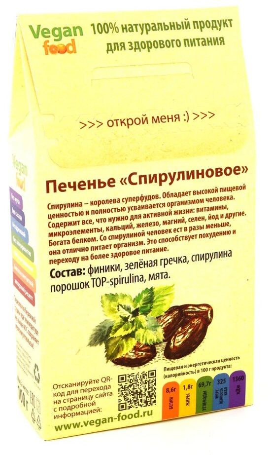 Vegan food Печенье «Спирулиновое»В данный момент этот товар отсутствует в продаже. Возможно, у нас найдется аналогичный или похожий товар здесь. Восхитительное удовольствие с пользой для организма! Изумрудное мягкое печенье с восхитительным вкусом. Разработанное специально для тех, кто любит сочетать вкусное и полезное и не любит специфический аромат спирулины. Содержит кладезь витаминов и полезных элементов! |