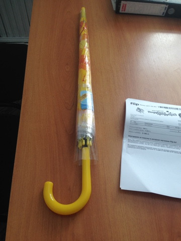 Заказала зонт с жёлтыми листьями. Великолепный! Как будто кусочек солнышка несёшь в руках в пасмурную погоду! Спасибо Флип.кз! Как всегда супер!