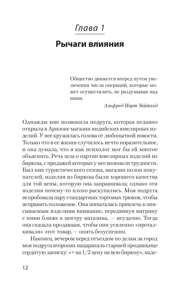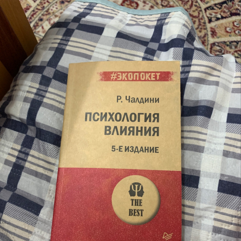 эта книга-бестселлер.С этой книгой вы узнаете,как хотя обычные мелкие вещи влияют на ваш выбор в любых ситуациях,будь критическое,будь раздумья. Книга для тех,кто хочет влиять на людей,и для тех,кто хочет защищаться от влияния.Эта книга для начинающих психологов,для начинания саморазвития,эта книга даже подойдет маркетологам,бизнесменам,ведь в этой книге много примеров из сферы торговли. Если вы в будущем хотите купить книгу Р.Грин «48 законов власти»,то,сначала купите эту книгу изучив базу влияния. Лишь недостатки это материал переплета и бумаг книги,но за такую цену пойдет.Как никак,не судите книгу по обложке.