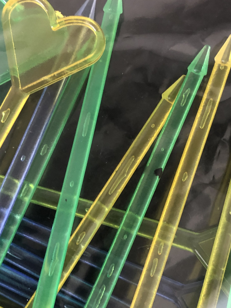 Попался набор без красного цвета. На некоторых шпажках есть чёрные крапинки, так что обращайте внимание, если это имеет значение. В целом, хороший набор за свою цену.