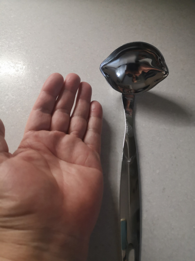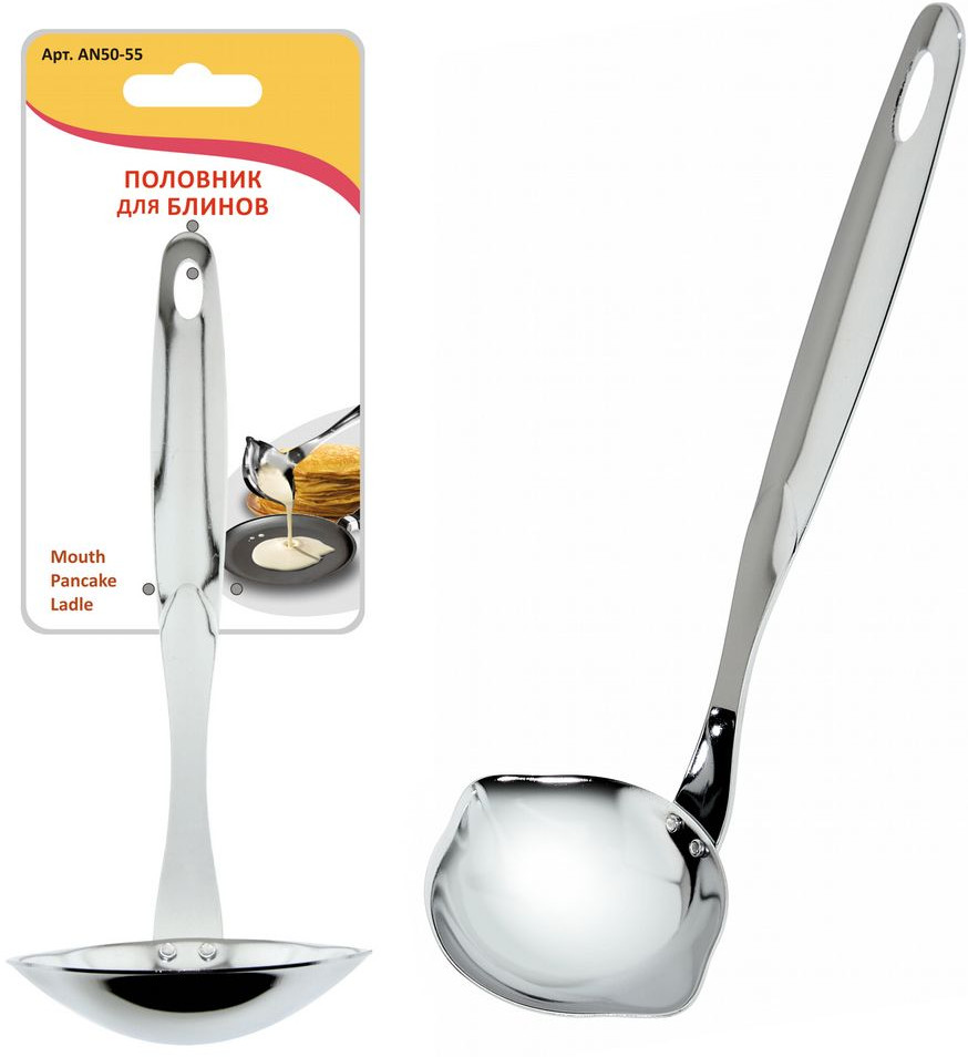 Половник очень понравился, для моей блинной сковородки, диаметром 18 см, в самый раз!