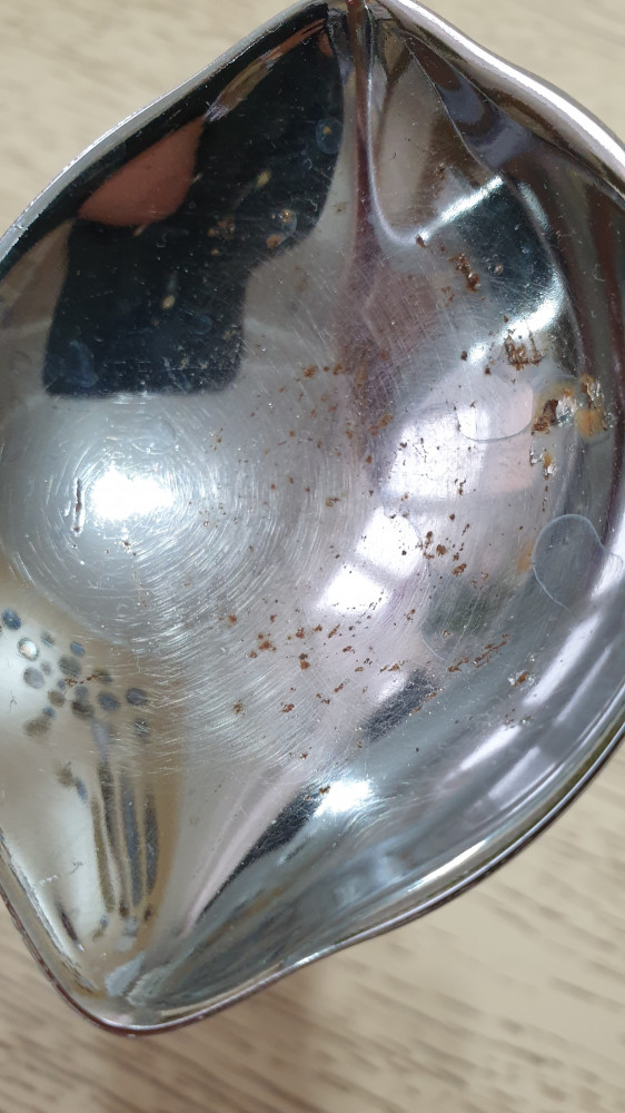 Черпачёк с заклепками и все в них забивается, а заклепачки при мытье пальчики царапают. Плохой товарец, ну прям некудышный😈