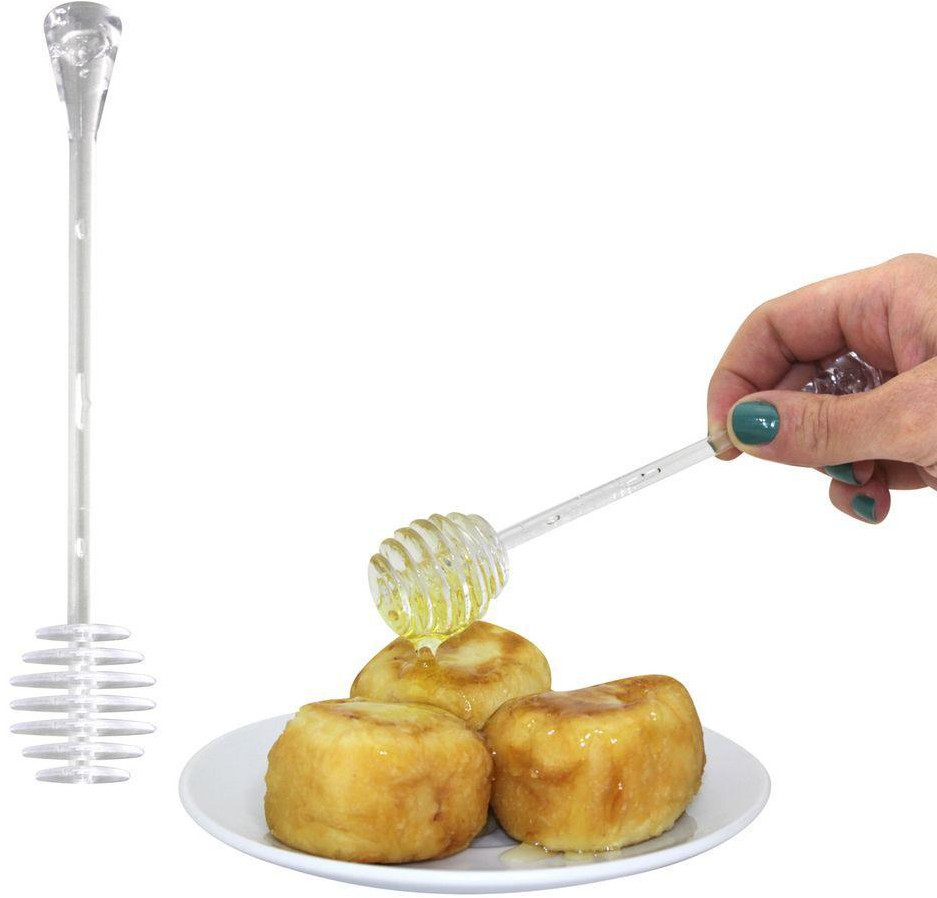 Идеально подойдет для баночек небольшого диаметра, но благодаря тому, что прорези между пластинами довольно глубокие, захватывает хорошую порцию меда. Идеально смотрится с прозрачной посудой.