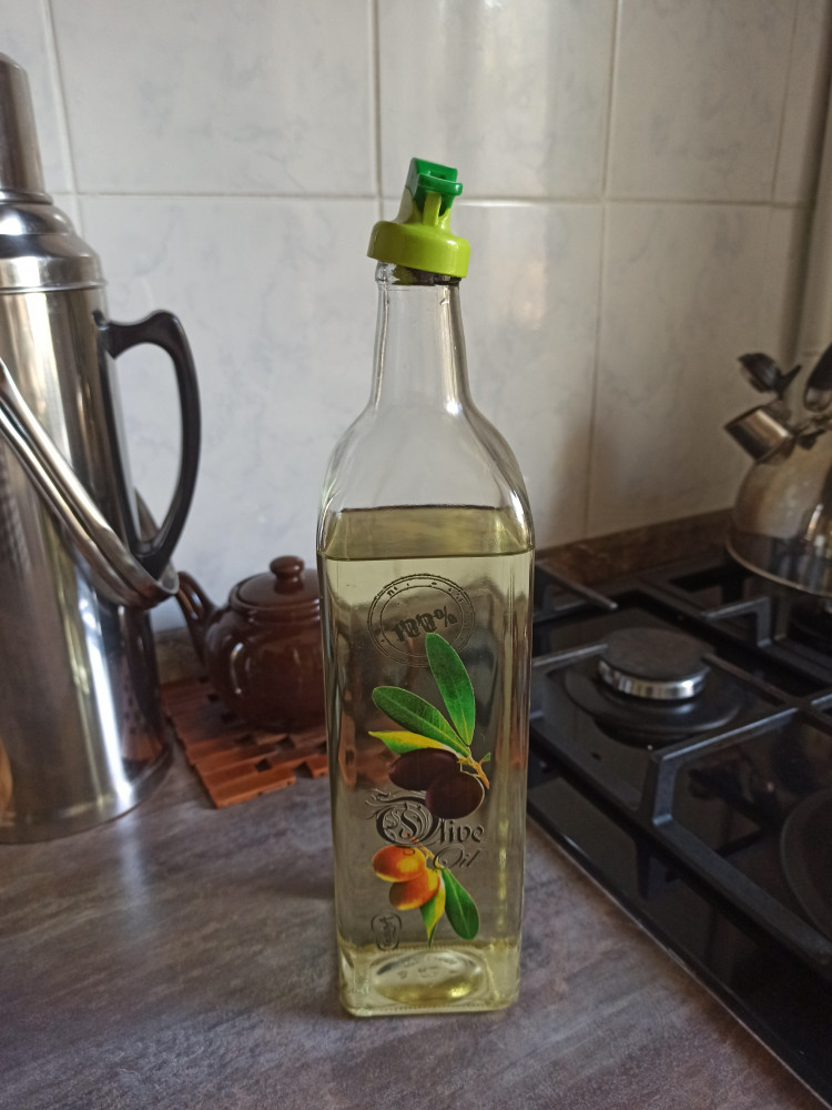 Очень понравилась бутылка, думала будет тяжелая, а она довольно легкая. И крышка в виде носика удобная, теперь масло точно не перельешь.