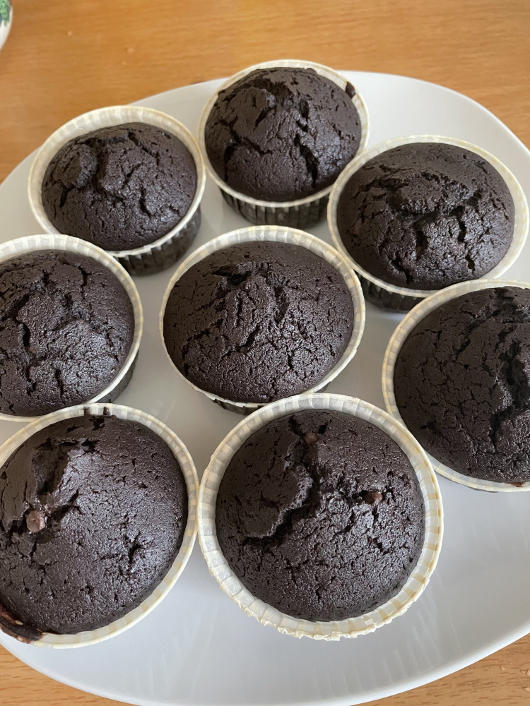 Очень вкусные маффины, тесто нежное, внутри капли шоколада😋. Просты в приготовлении. Нам с детками очень понравилось (особенно с молоком).
