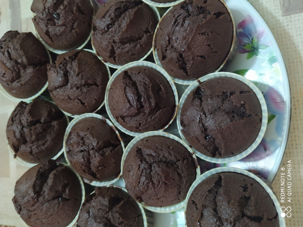 Выпекала сразу две пачки, чтобы 16 штук получилось. Пушистые, нежные, очень шоколадные. Все делала по рецепту на упаковке.