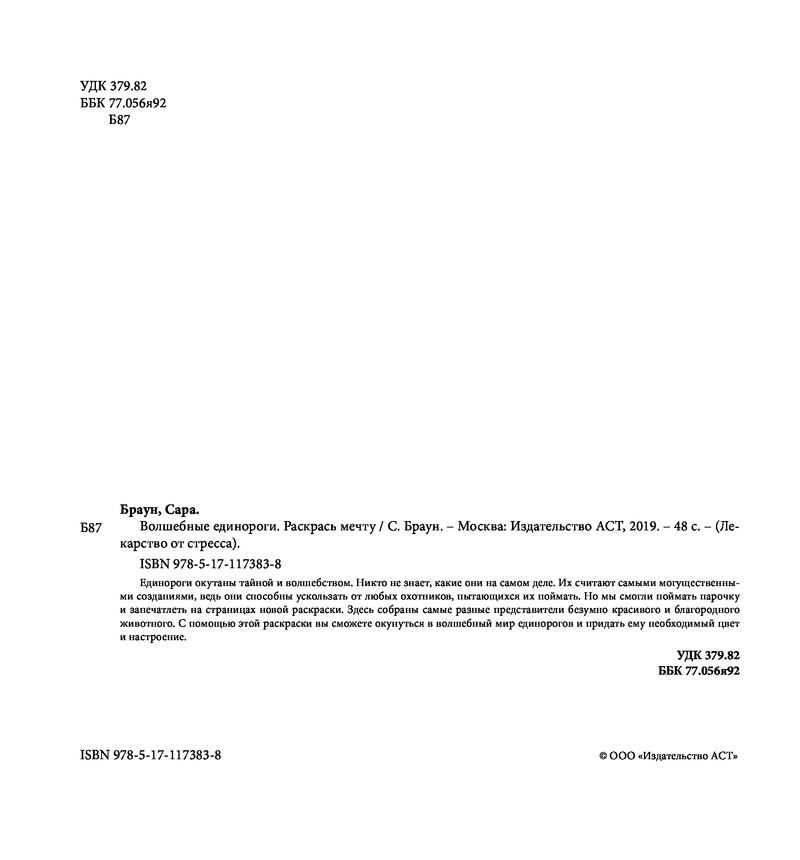 Волшебные единороги. Раскрась мечтуВ данный момент этот товар отсутствует в продаже. Возможно, у нас найдется аналогичный или похожий товар здесь. Серия: Лекарство от стресса Единороги окутаны тайной и волшебством. Никто не знает, какие они на самом деле. Их считают самыми могущественными созданиями, ведь они способны ускользать от любых охотников, пытающихся их поймать. Но мы смогли поймать парочку и запечатлеть на страницах новой раскраски. Здесь собраны самые разные представители безумно красивого и благородного животного. С помощью этой раскраски вы сможете окунуться в волшебный мир единорогов и придать ему необходимый цвет и настроение. |