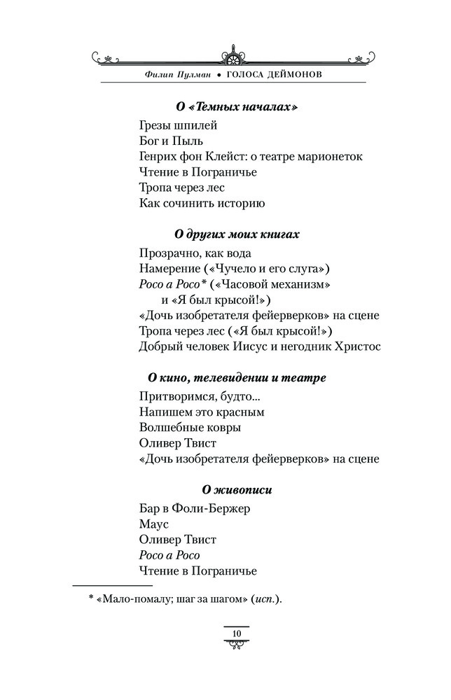 В этом отзыве хотелось бы отметить и минусы, и плюсы: Плюсы: хороший язык, многообразие тем, честность писателя, удобная систематизация материала, качественные цветные иллюстрации в приложении. Минусы: творчество Пулмана довольно специфично, а порой и оскорбительно для некоторых читателей,но и в этом же плюс - расширяется мировоззрение