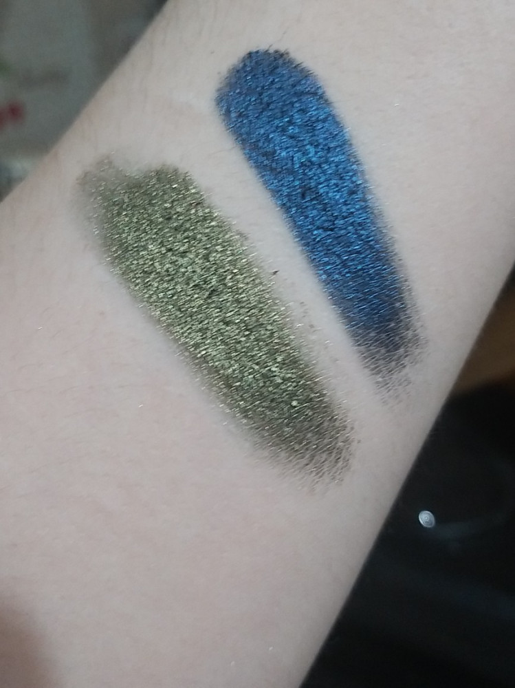 Купила болотное хаки и перламутровый синий, цвета отличные,пигментация огонь.