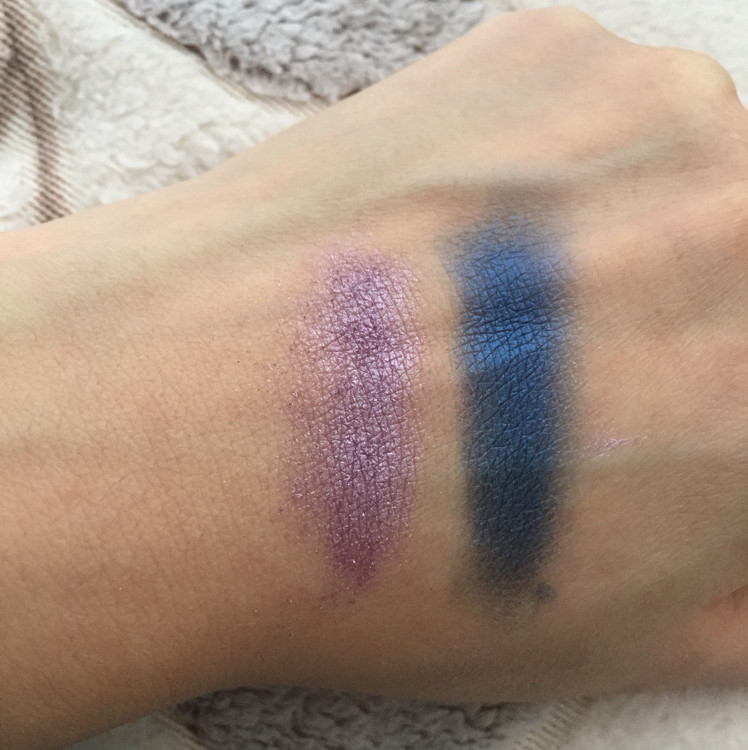 Тени оказались для меня очень сложны в нанесении, даже с базой. Пятнят, плохо тушуются. Цвет, конечно, прекрасный: темно-сизый, насыщенный. Буду пробовать варианты с ними.