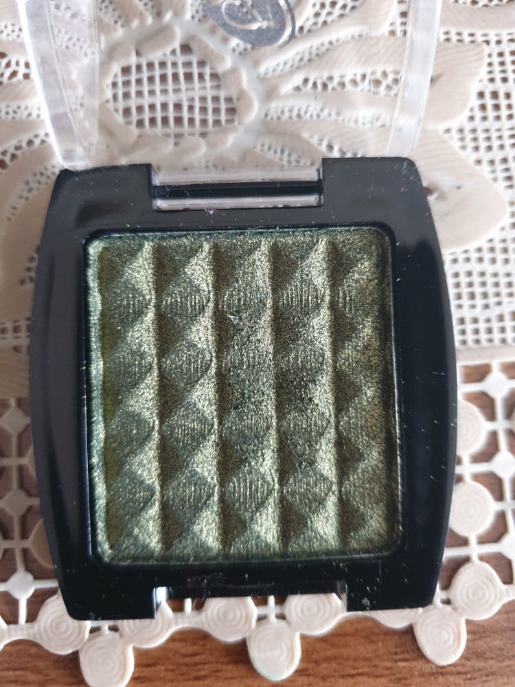 Брала Болотный Хаки. Цвет отличный, пигментация насыщенная. Хорошая растушевка. Но на моих веках через час "плывет".