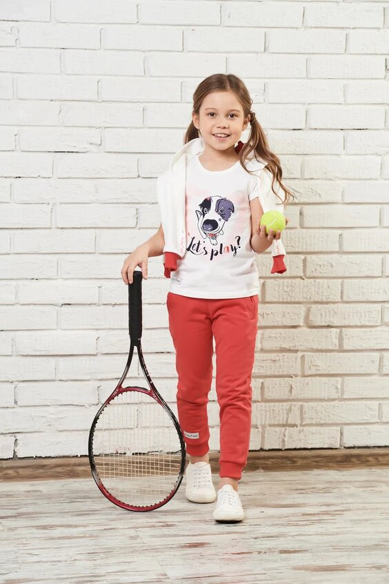 Футболочка очень мягкая и нежная на ощупь и к телу. Соответствует размерной сетке. Так моей принцессе нравятся собачки эта футболочка с оригинальным принтом её самая любимая. Так же на более прохладную погоду у нас есть спортивный костюм из этой же коллекции (с длинным рукавом). После многократных стирок принт остался без изменения, не деформировалась