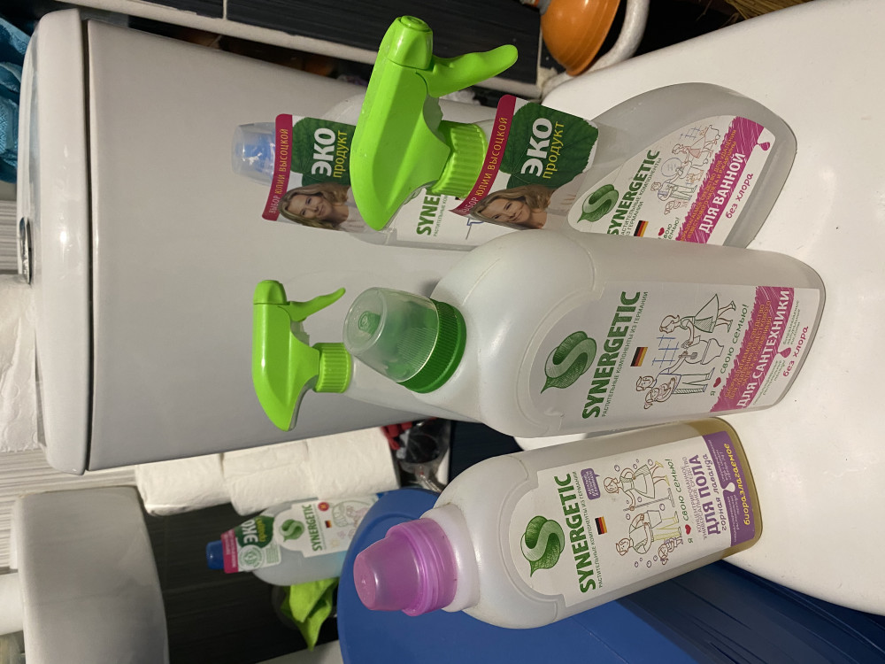 Как же я счастлива,что год назад открыла для себя эту продукцию. Мы мучились и не знали чем удалить черноту в Гааз между кафелем. Что только не пробывали,а брызнули Синергетиком и вуаля, почти вся чернота легко отмылась. А какие блестящие краны и смесители после средства !!!! Для меня важно, что одно средство доя всех поверхностей в ванной комнате, а то раньше приходилось покупать несколько разных средство-одно для ванны ,другое доя унитаза. А тереть одно купила и счастлива. Важно, что ещё и нет пещерно запаха. В семье есть аллергик и астматик