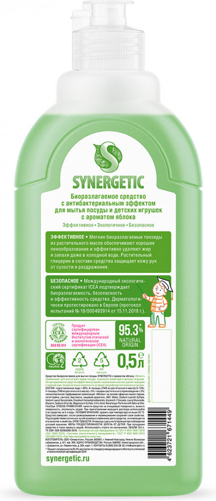 Synergetic Гель антибактериальный для мытья посуды «Сочное яблоко»
