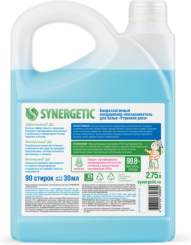 Synergetic Кондиционер-ополаскиватель для белья гипоаллергенный «Утренняя роса»