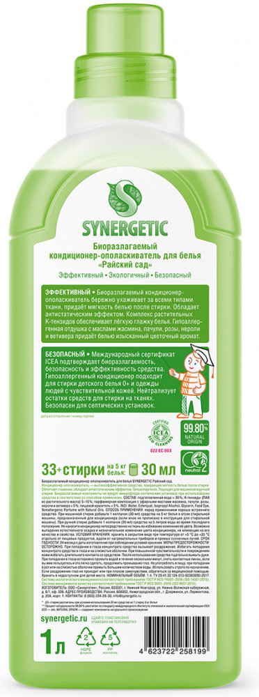 Synergetic Кондиционер-ополаскиватель гипоаллергенный для белья «Райский сад»