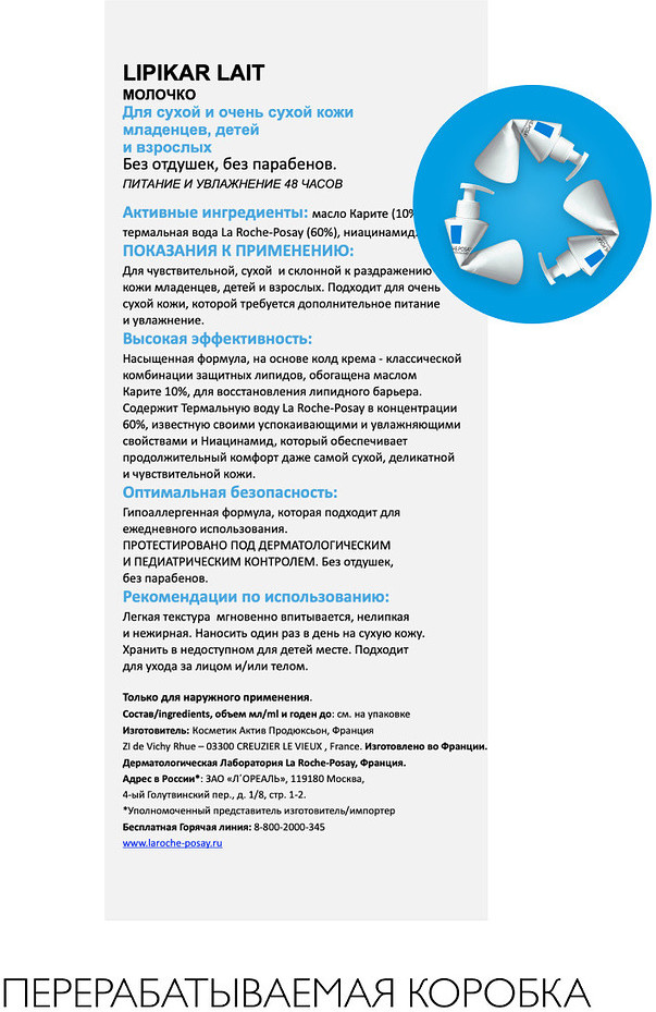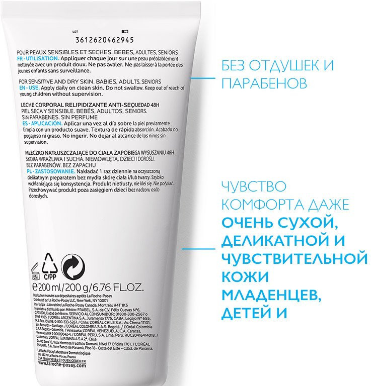 La Roche-Posay Lipikar Lait Молочко для сухой и очень сухой кожи младенцев, детей и взрослыхВ данный момент этот товар отсутствует в продаже. Возможно, у нас найдется аналогичный или похожий товар здесь. Серия: Lipikar Молочко LIPIKAR LAIT восстанавливает липидный барьер кожи благодаря насыщенной формуле, на основе колд крема — классической комбинации защитных липидов, обогащенной маслом карите 10%. Средство содержит термальную воду La Roche-Posay в концентрации 60%, известную своими успокаивающими и увлажняющими свойствами и ниацинамид, который обеспечивает продолжительный комфорт даже самой сухой, деликатной и чувствительной кожи младенцев, детей и взрослых. Гиппоаллергенная формула молочка гаммы Липикар подходит для ежедневного использования. Лёгкая текстура средства мгновенно впитывается, она нелипкая и нежирная. |