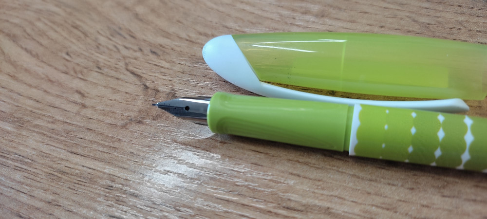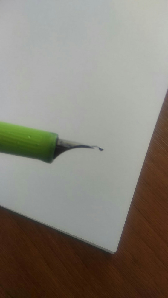 Ручка у нас пол года, пишет, но заедает. Минус в том что очень мягкое перо, почти сразу погнулось, покупала так же для мужа перьевую Берлинго, как новая пишет идеально! Тоже фото для сравнения.