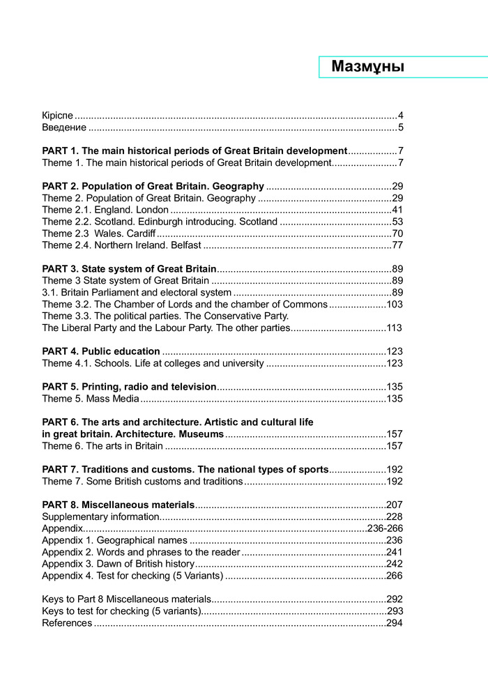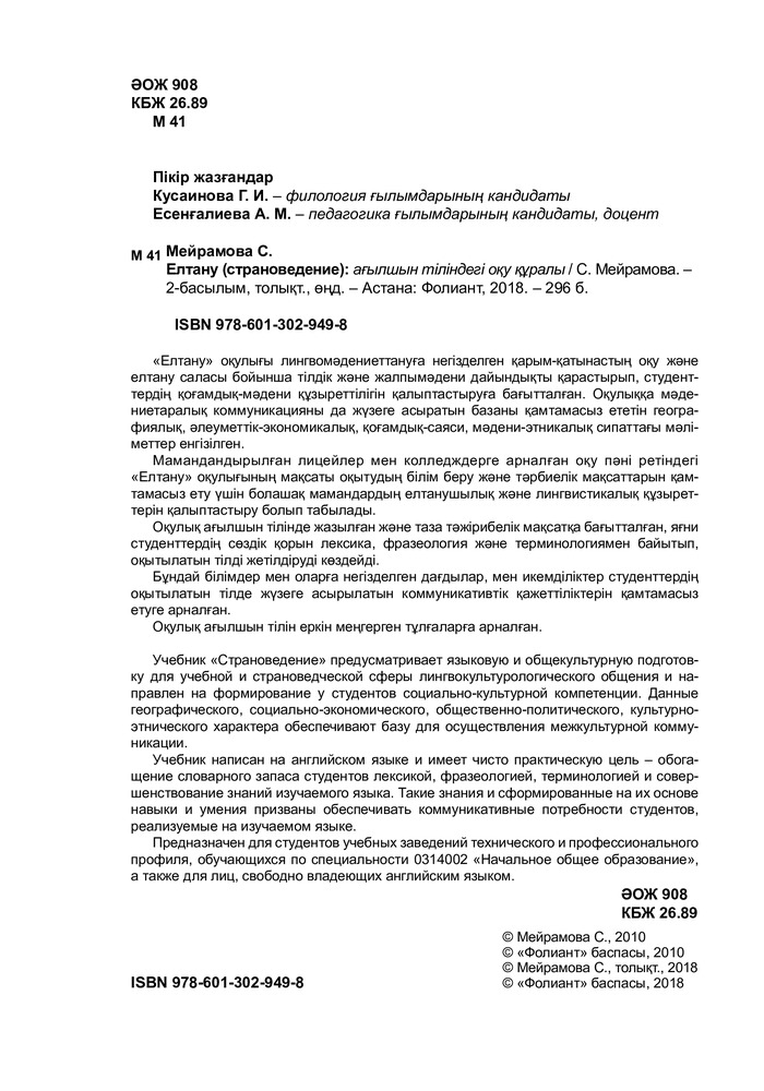 Елтану (страноведение). Ағылшын тіліндегі оқу құралы+255