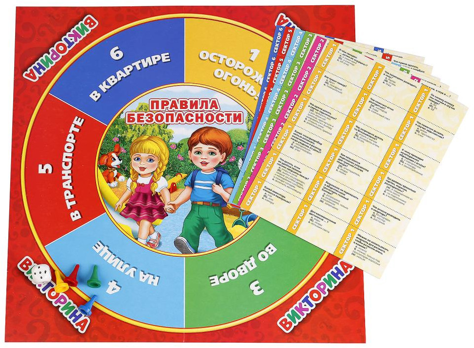 УМка Игра-викторина «Правила безопасности. 100 вопросов для почемучек»В данный момент этот товар отсутствует в продаже. Возможно, у нас найдется аналогичный или похожий товар здесь. Настольная игра-викторина «Правила безопасности» содержит 100 вопросов по темам мер безопасности дома, на улице, в транспорте и т.д. В комплект входят игровое поле, 4 фишки, кубик, карточки с вопросами. |
