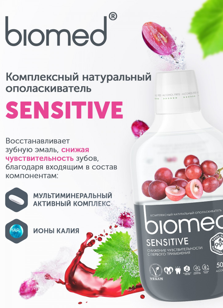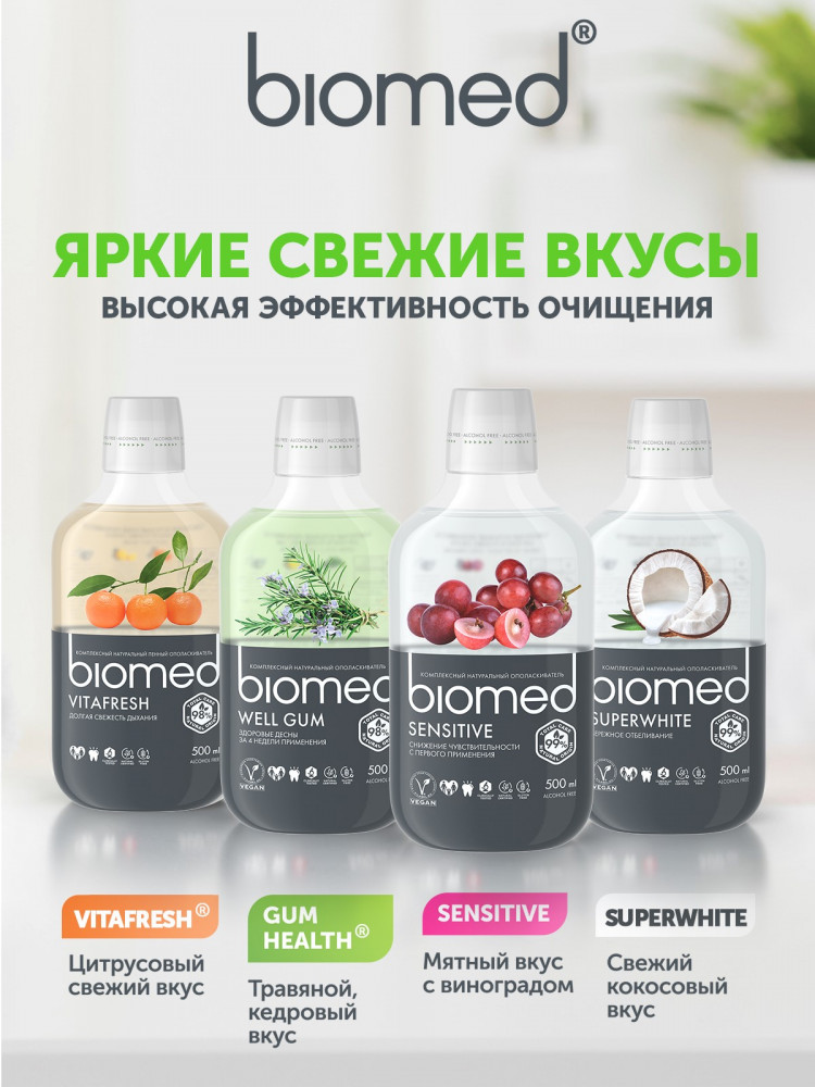 Biomed Ополаскиватель для полости рта «Sensitive»-20% +77 приятный вкус большой объём выгодная цена длительная свежесть не обжигает