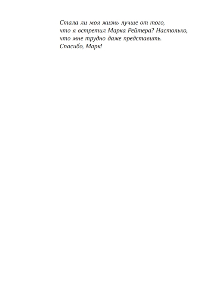 Две звёздочки за оформление книги, белые листы и качество печати. Содержание книги меня разочаровало, не понимаю где бестселлер и чёткий план действий? Как всегда, в литературе такого рода, много рассказов, примеров и мало сути. Относительно ценная информация начинается с третьей части.