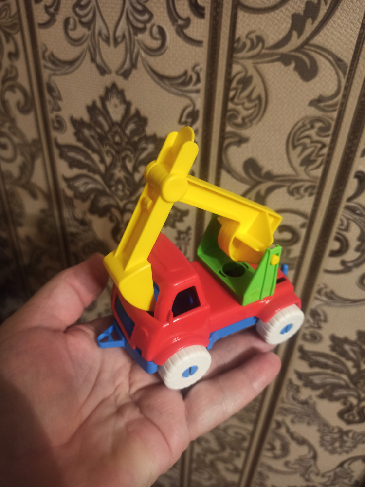 Небольшая милая машинка. хороший не хлюпкий пластик. яркая . Машинки можно цеплять паровозиком .