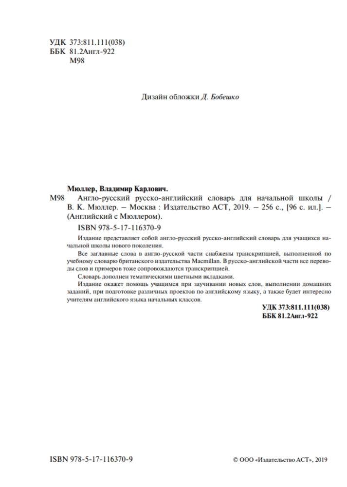 💳 Оплатить за товар можно при получении 🇰🇿 Есть бесплатная доставка по Казахстану от 1 дня 🎁 Копите бонусы с каждой покупки Серия: Английский с Мюллером Издание представляет собой англо-русский русско-английский словарь для учащихся начальной школы нового поколения. |