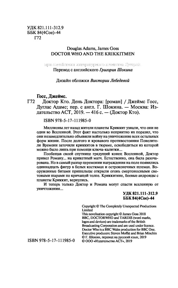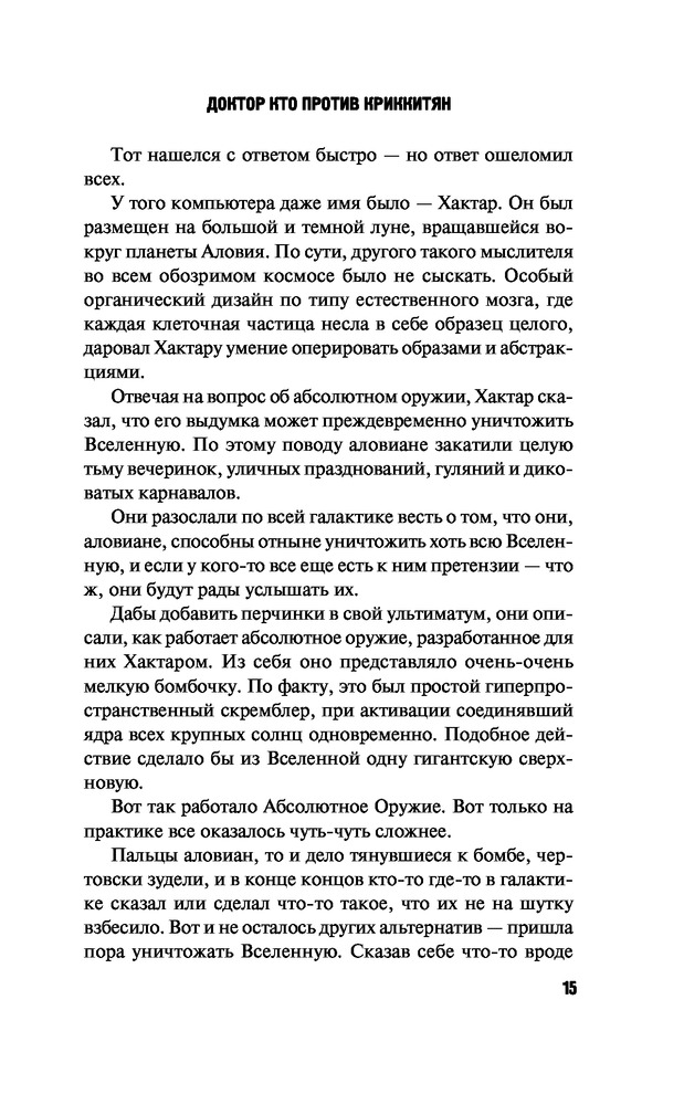 Серия: Доктор Кто Миллионы лет назад жители планеты Криккит узнали, что они не одни во Вселенной. Этот факт настолько неприятно их поразил, что они незамедлительно объявили войну на уничтожение всех остальных форм жизни. После долгого и кровавого противостояния Повелители Времени заточили криккитов в тюрьме, освободиться из которой можно было лишь при помощи ключа-калитки... |
