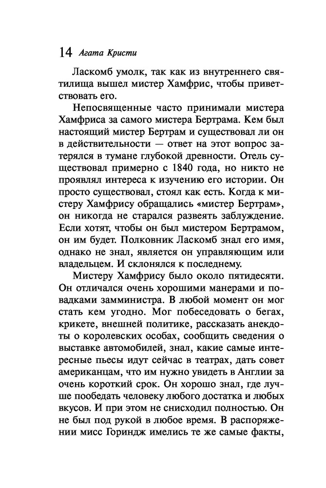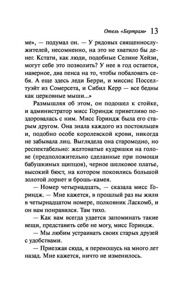 Если уж несравненную мисс Марпл угораздило, бросив свой цветник, выбраться из дома и поселиться в отеле, пусть даже весьма респектабельном, там непременно произойдет преступление. Причем такое, что пожилой леди придется для раскрытия не только применить свою знаменитую логику, но и воспользоваться достижениями научно-технического прогресса.