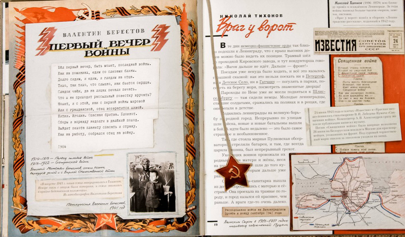 На полях книги, в клапанах и на специальных исторических разворотах размещён подробный историко-бытовой комментарий о ходе войны, устройстве советской армии, военной форме, оружии, орденах и повседневной жизни на фронте, в тылу, в эвакуации, в блокадном Ленинграде. Подлинные предметы и документы тех лет — письма с передовой, газетные очерки, военные плакаты, наградные листы и фотоснимки из семейных архивов — помогут увидеть и понять, какими были эти годы для всех, кого коснулась война.