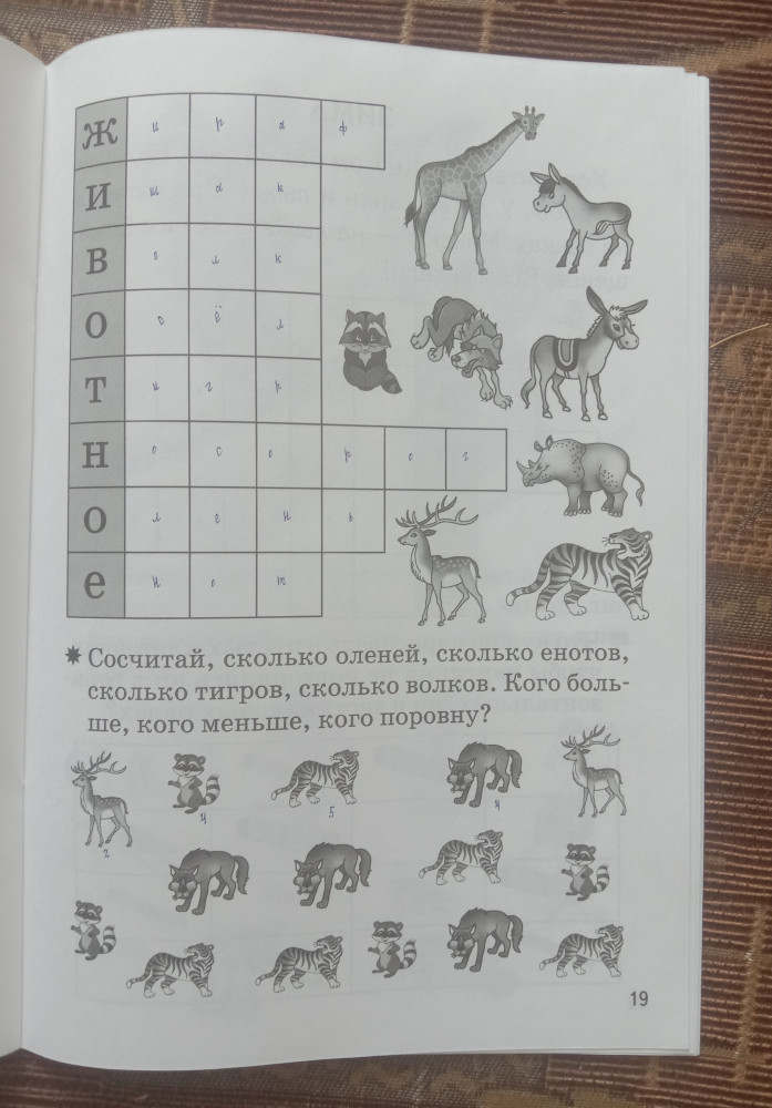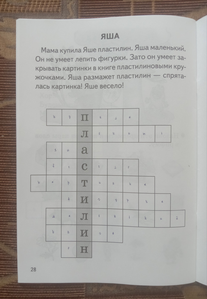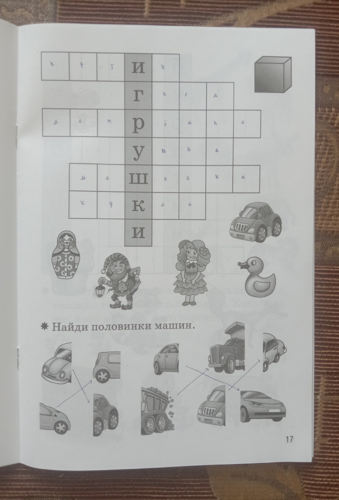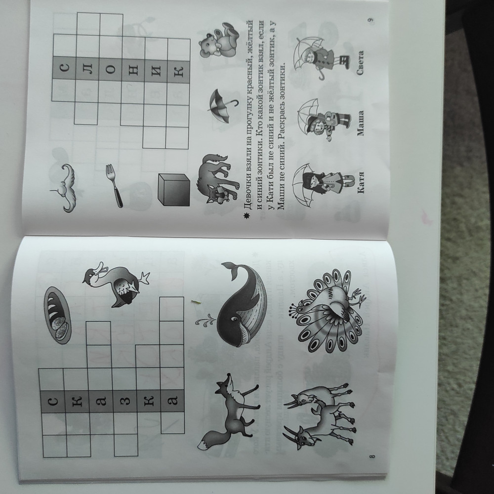 Это не совсем кроссворды. Нарисованы картинки на странице, нужно вписать названия в клеточки, а не как в кроссворде отгадывать ответ на вопрос.