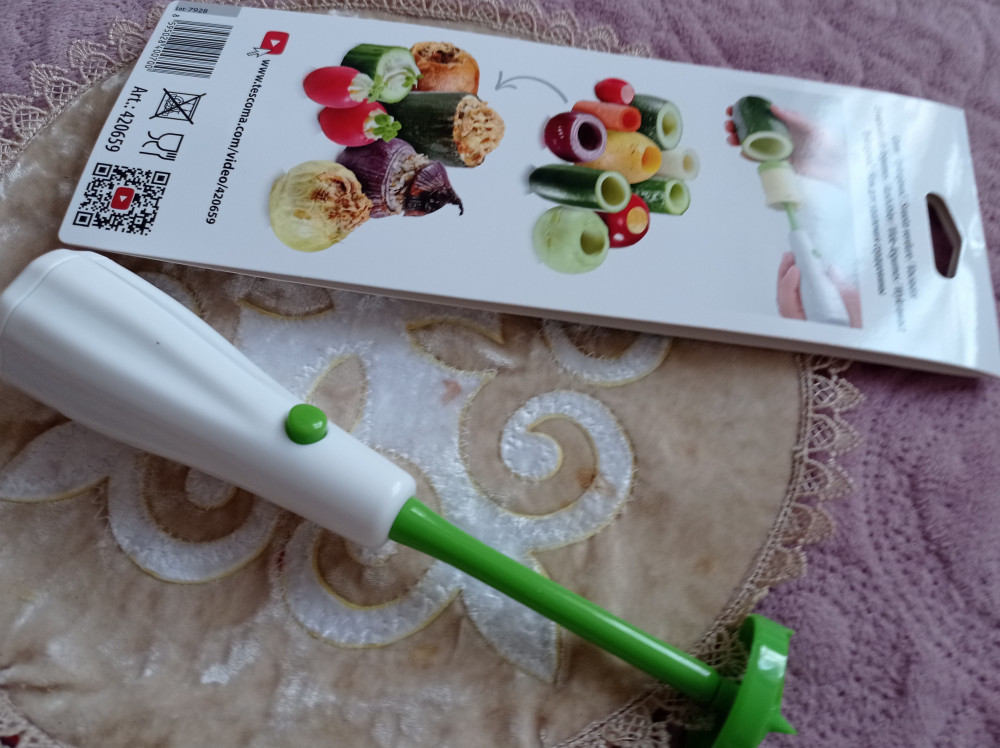 очень классная и полезная вещь. попробовала удалять сердцевину у баклажанов и в помидорах. Работает классно. Рекомендую