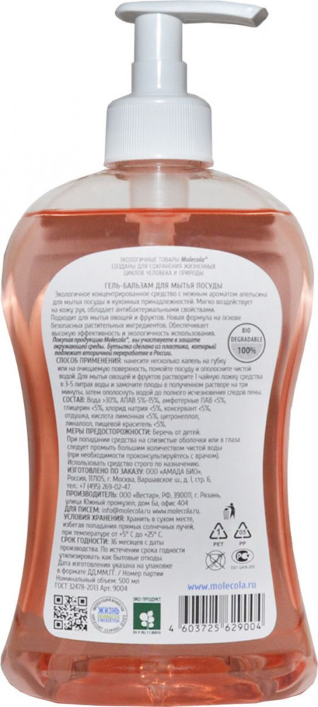 Molecola Средство экологичное для мытья посуды «Рубиновый апельсин»