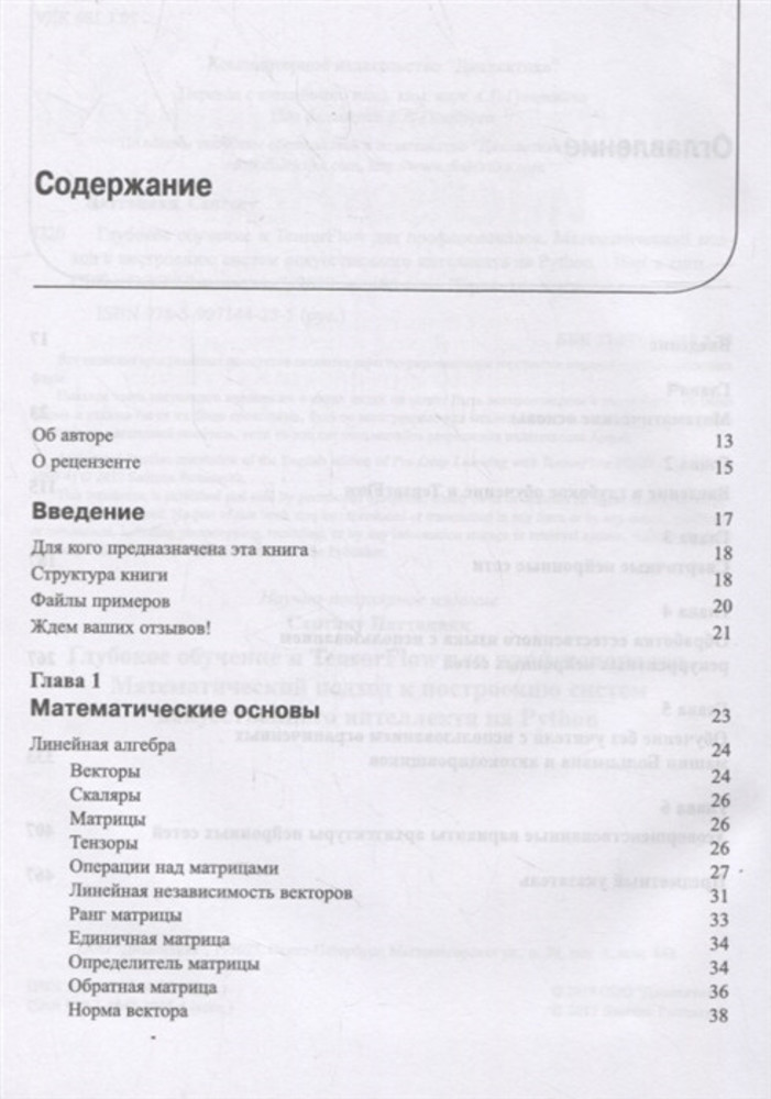 Глубокое обучение и TensorFlow для профессионалов. Математический подход к построению систем искусственного интеллекта на PythonВ данный момент этот товар отсутствует в продаже. Возможно, у нас найдется аналогичный или похожий товар здесь. Данная книга представляет собой углубленное практическое руководство, которое позволит читателям освоить методы глубокого обучения на уровне, достаточном для развертывания готовых решений. Прочитав книгу, вы сможете быстро приступить к работе с библиотекой TensorFlow и заняться оптимизацией архитектур глубокого обучения. |