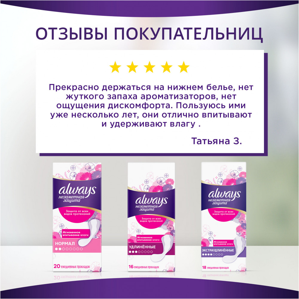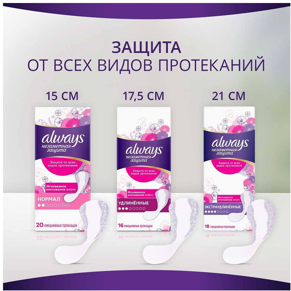 Always Прокладки ежедневные удлинённые, 16 шт.